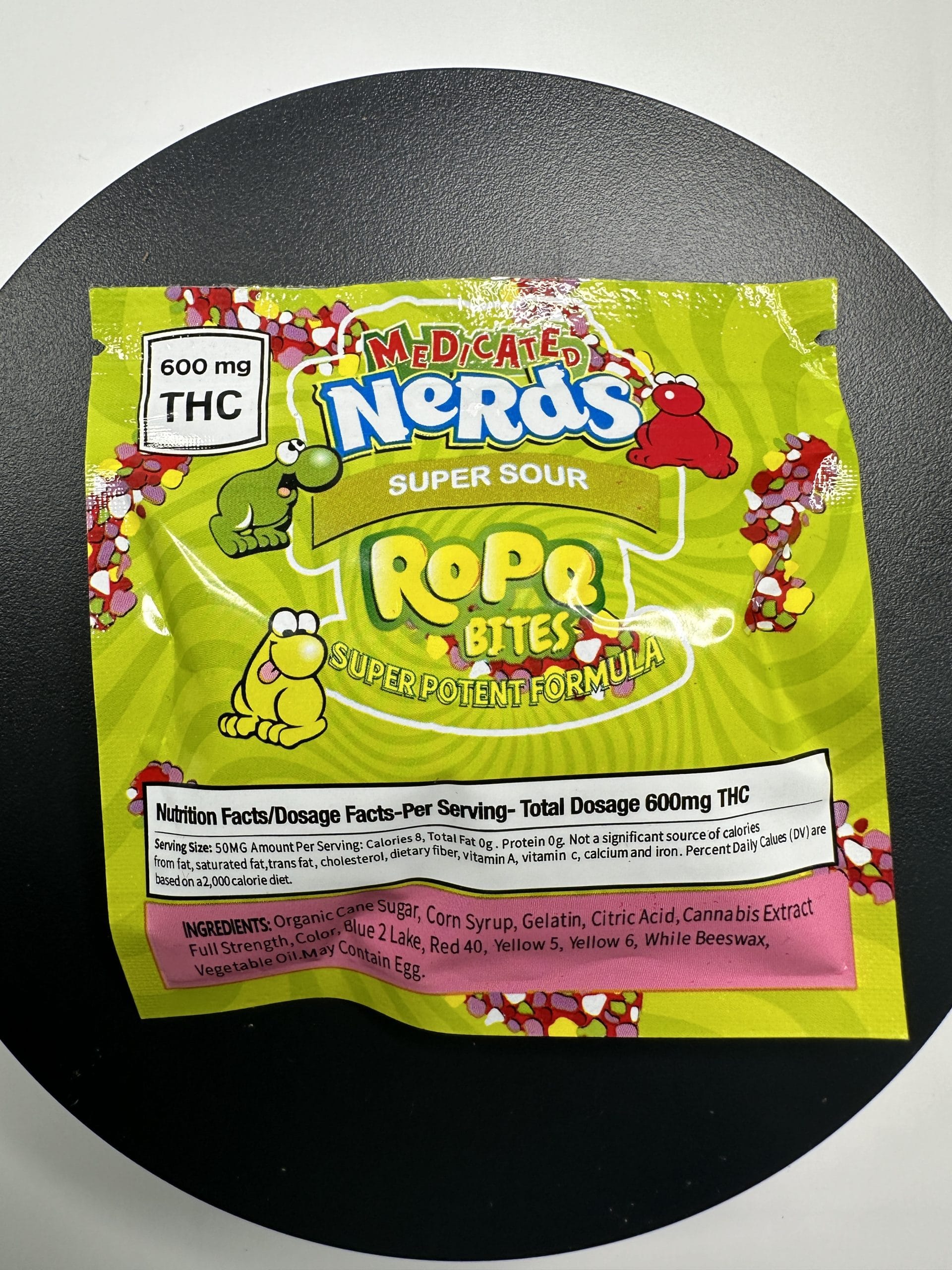 Get ready for a wild, tangy ride with Medicated Nerds Super Sour Rope Bites! Each package contains a powerful 600 mg of THC, offering a potent edible experience in a fun, chewy, and sour candy form. These bite-sized treats combine the iconic sour ropes with a cannabis infusion, making them a perfect choice for those who love a sweet-and-sour kick along with a strong THC effect.